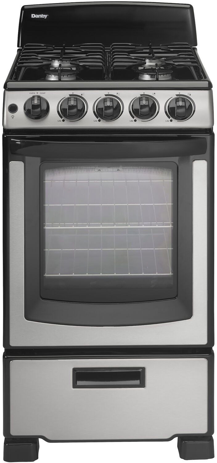 Compact solution for small space living: 20″ free standing gas range with a large 2.3 cu. ft. oven capacity