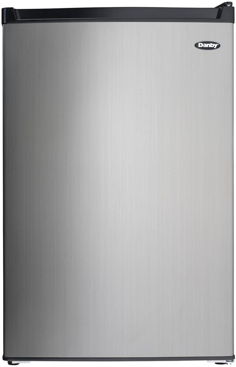 Danby 4.5 cu. ft. Single-Door Compact Refrigerator with True Freezer in Stainless Steel. This compact refrigerator by Danby offers 4.5 cubic feet capacity with a sleek stainless steel finish. It includes a full-width true freezer section (operates at -18°C) to ensure your ice cream and perishables are kept frozen and comes Energy Star rated.Read More