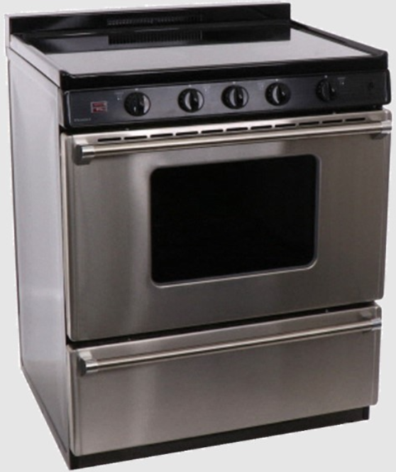 This 30 inches smooth top electric range comes with two 8 inches and two 6 inches electric elements, a surface element signal light, windowed oven door with interior light, two oven racks and a storage drawer